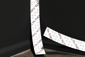 DELTA®-THENE BAND T300 e T150 para colagem de sobreposições/transições: membranas autoadesivas em rolo, para uma rápida e eficiente aplicação. Espessura aprox. 1,5 milímetros. Rolos de 10 m x 0,3 m (T300) e 10 m x 0,15 m (T150);