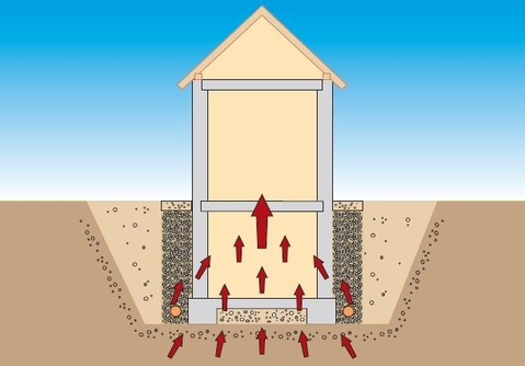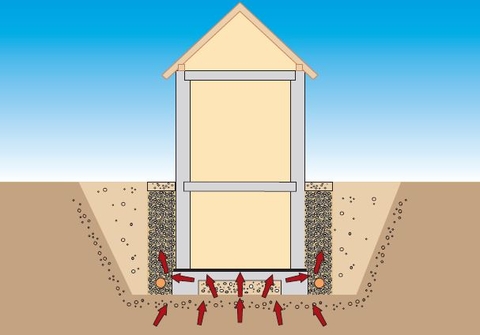 O DELTA® -RADONSPERRE aplicado horizontalmente na laje de betão cria uma barreira ao gás radão ascendente do subsolo.