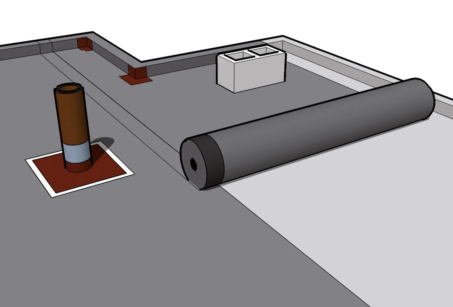 As sobreposições de membranas são de pelo menos 10 cm e devem ser coladas com DELTA®-THENE BAND T150/T300 ou DELTA®-THAN. Algum corpo emergente (ex. tubo) deve ser vedado com DELTA®-THENE BAND T150 / T300 ou DELTA®-FLEXX BAND. Os cantos serão tratados com DELTA®-DPC CORNERS. Alternativa: Para cantos internos, também é possível efetuar com a própria membrana; para cantos externos, é possível formar canto com DELTA®-THENE BAND T150 / T300.