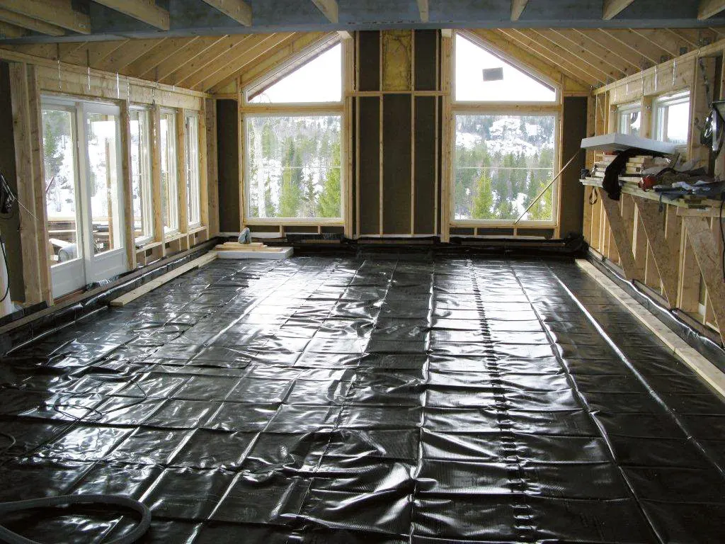 A escolha do suporte é essencial. Recomendamos o uso de painéis isolantes (laje isolada), concreto limpo ou uma camada de areia. Se a membrana for aplicada sobre brita ("cama de pedra"), deverá ser aplicado entre a membrana e a brita, um geotêxtil com no mínimo de 300 g/m² para evitar a perfuração da membrana anti radão.