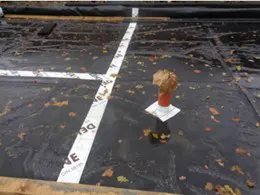 Também é possível instalar o sistema DELTA®-RADONSPERRE antes da betonagem da laje, desde que a membrana seja colocada sobre uma base rígida (betão de limpeza, isolamento rígido e camada de regularização de areia). Com esta aplicação há maior probabilidade de danificar a membrana.