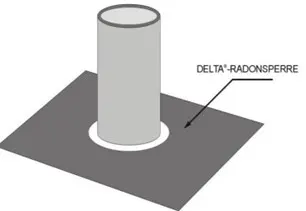 Crie uma abertura na membrana DELTA®-RADONSPERRE e insira-a através do tubo.