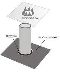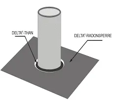 Se nas paredes utilizar o DELTA®-DPC (barreira anti capilaridade sob as paredes), a ligação com a membrana DELTA® -RADONSPERRE será feita com a fita adesiva DELTA®-THENE BAND T150.