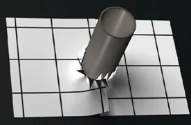 Corte um pedaço de membrana autoadesiva DELTA®-THENE T300 de cerca de 30 x 30 cm. Faça um corte formato de estrela, cujo tamanho corresponde ao diâmetro do tubo. Deslize a peça pelo tubo,